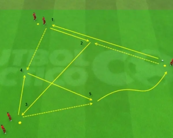 Vamos enfatizar na superfície de controle e depois golpeio da bola para uma boa execução. Assim como ao mesmo tempo tentaremos trabalhar a lateralidade dos jogadores para um bom progresso destes.